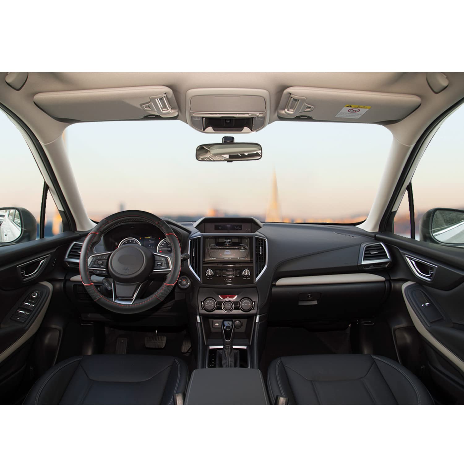 GIANT PANDA Customized Auto Steering Wheel Cover for Subaru Forester, Car Steering Wheel Cover for Subaru Outback and Crosstrek - Black+Red Trim